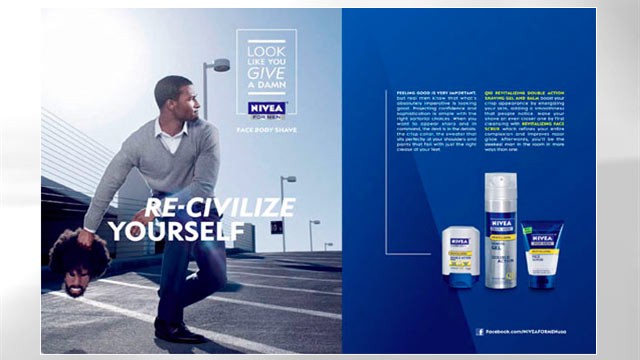 We appreciate all of your comments and feedback regarding the recent “Re-civilized” NIVEA FOR MEN ad. Our company values diversity and equal opportunity, and it was never our intent to offend anyone. We have ceased placing the ad in media everywhere.