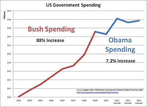 #1 Federal Government spending increased 88% under President G.W. Bush as compared to 7.2% under President Obama. So who is the real socialist who drove up out national debt?