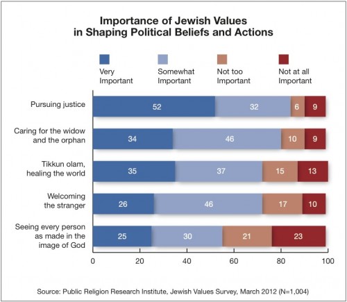 Much to my pleasant surprise, the Public Religion Research Institute (PRRI) is reporting that a study has found similar levels of enthusiastic support for President Obama in the American Jewish community today as in 2008. Why? There are two apparent reasons: First, most American Jews when asked about how their Jewish values influence their political preferences, a plurality of 46% said “commitment to social equality” determines how they vote. In other words, those political parties or politicians who express sentiments that denigrate or disenfranchise segments of society are not going to find a lot of friends and supporters among American Jews.