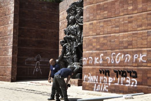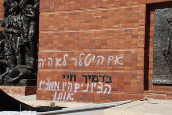 Israelis were stunned to discover this morning that Yad Vashem, their national museum dedicated to remembering the Holocaust, had been vandalized with anti-Semitic and anti-Zionist graffiti. The Warsaw Ghetto Uprising Remembrance Wall that greets visitors to the museum was among the sites vandalized.