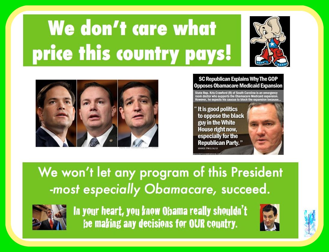 Any one who doesn’t believe that the “we won’t let Obama have his way on anything” -wing of the Republican Party hasn’t become a dangerous fifth-column that is undermining our democracy, our economy and the well-being of our nation is in denial. Wake up America.