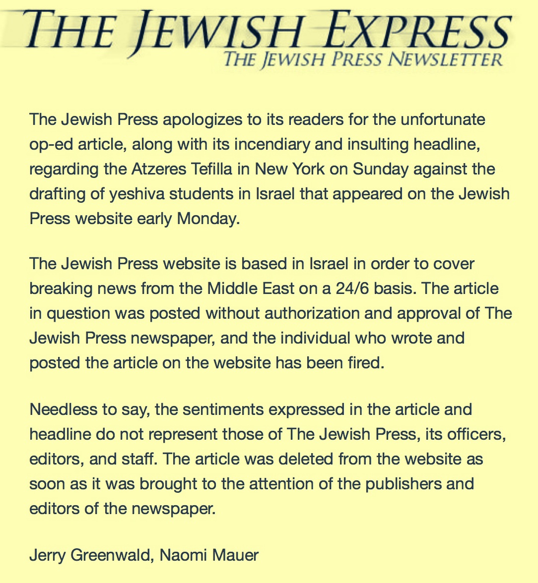 They flooded downtown Manhattan with the anti-draft for Haredim message: everybody else is welcome to get themselves killed. What was even more astonishing was their honesty regarding the bankruptcy of their entire school of faith and study.