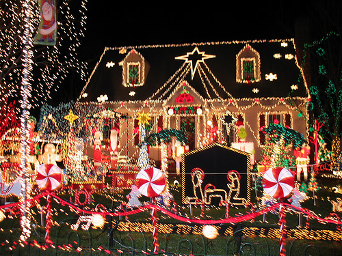 That is your house that’s causing all the car accidents? Considering how you’re dressed 😉, it’s amazing how nice the decorations came out. And so what if all those Christmas lights are redirecting planes from the airport, it’s not your problem.